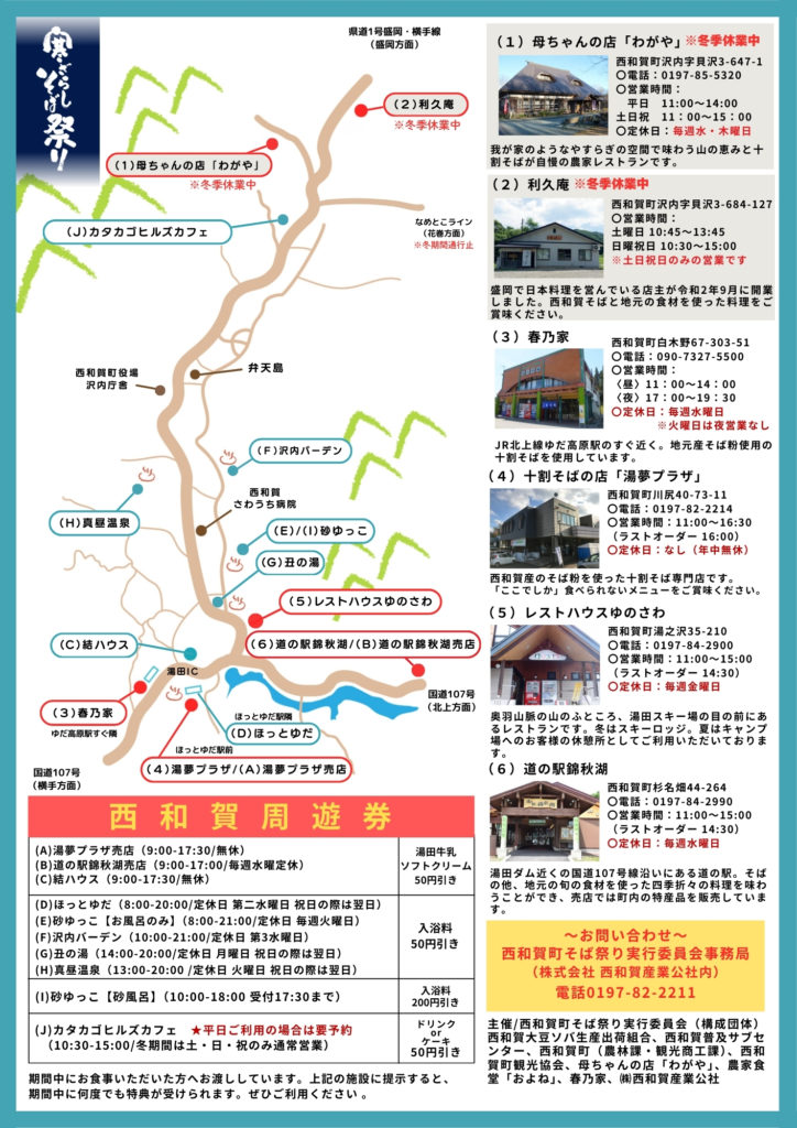 対象の店舗でお食事いただいた方には、「西和賀周遊券」をプレゼント♪