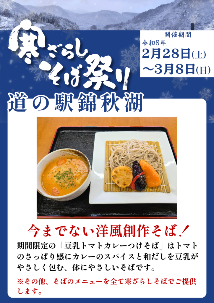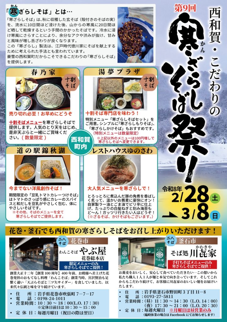 西和賀町内で寒ざらしそばが楽しめる♪ 花巻・釜石の2店舗でも西和賀の寒ざらしそばをお楽しみいただける、9日間限定のイベントです❄️