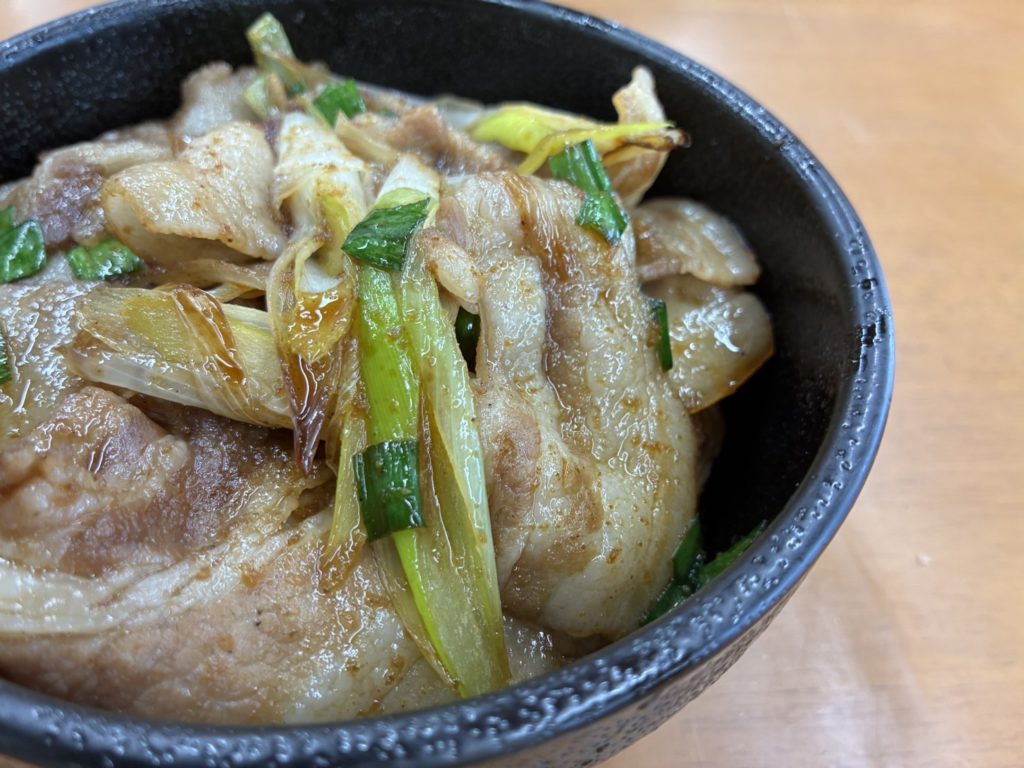 岩手県産の豚バラ肉と、青唐辛子パウダーを入れた特製タレの辛味がぴったり。具材にはねぎとニラが入っているので、風味豊かで味わい深いごはんメニューです!